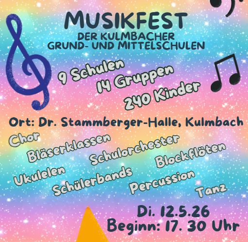 am Di. 12.5.26 findet in der Dr. Stammberger-Halle in Kulmbach das Musikfest der Kulmbacher Grund- und Mittelschulen statt. 240 Schülerinnen