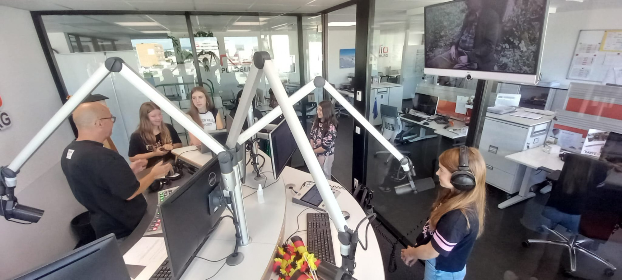 Genau davon konnten sich die Mädels von unserer MaxRadio AG jetzt selbst ein Bild machen. Wir waren herzlich eingeladen ins Sendestudio von Radio Plassenburg zu kommen. Und nicht nur das. Sogar live on air war eine von uns! Klara aus der fünften Klasse hat ihren ganzen Mut zusammengenommen und sich live in der Sendung vom Moderator Markus interviewen lassen. Nach etwas Lampenfieber am Anfang, hat sie die Sache dann so gut gemacht, dass ihr neuer Jobwunsch ganz klar ist: Radio-Moderatorin!