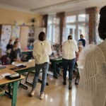 Auch den höhren Klassen stattet er einen Besuch ab.