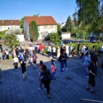 Auf die Plätze, fertig, los! Und schon machten sich alle Schülerinnen und Schüler der Grund- und Mittelschule auf zur ersten Runde des Spendenlaufs.