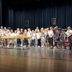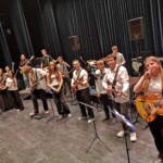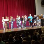 Am Ende formierte sich eine großes Orchester aus allen anwesenden Bläserklassen mit ca. 80 Musikern und spielte ein gemeinsames Stück. Zum Abschluss des Musikfestes kamen alle 260 Musiker nochmals auf und vor die Bühne und sangen gemeinsam das Lied „Heut ist so ein schöner Tag!“.