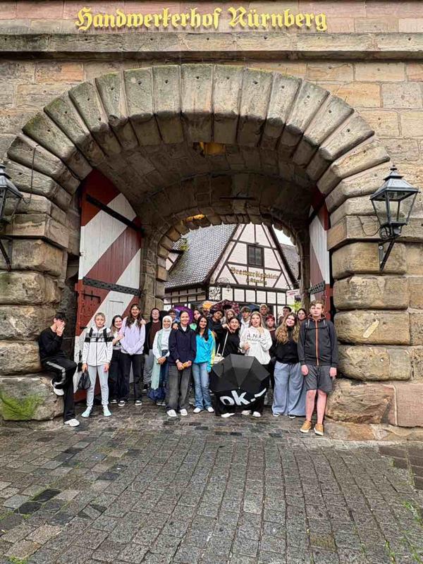 Berufsorientierung mal anders – so begann der Stadtrundgang der Klasse 8bg: Im Handwerkerhof entdeckten wir altes Handwerk inmitten mittelalterlicher Stadtmauern. Zwischen Zinngießern, Glasbläsern und Fachwerkhäusern wurde deutlich, wie vielfältig und kreativ Berufe im Mittelalter (und heute!) sein können.
