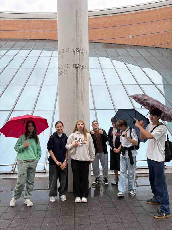 Ein besonderer Moment erwartete uns an der „ Straße der Menschenrechte“ . In Anknüpfung an unseren GPG-Unterricht und die Verfassungsviertelstunde suchten die Schüler gezielt nach den Säulen, auf denen die Artikel der Menschenrechte in der Sprache ihres Herkunftslandes stehen. Ein eindrucksvolles Symbol für die Vielfalt und das Miteinander in unserer Klasse und an unserer Schule.