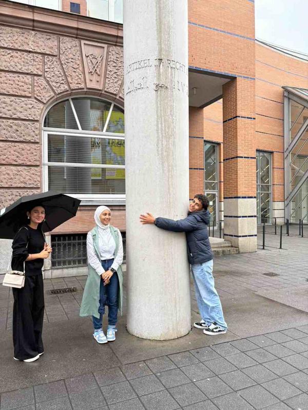 Die „ Straße der Menschenrechte“ mit ihren 30 Säulen setzt ein starkes Zeichen in der Stadt mit NS- Vergangenheit : Nie wieder Ausgrenzung, nie wieder Rassismus. Die Schüler erinnerten sich an unsere Unterrichtsthemen zu Diktatur, Grundrechten und Menschenwürde – und sahen die Bedeutung dieser Werte nun direkt vor sich in Stein gemeißelt.
