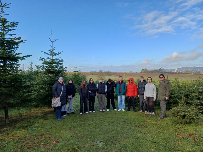 Unsere Klasse, also die Praxisklasse, ging mit unserer Lehrkraft Frau Wende am 1.12.2025 gegen 9:15 Uhr zum Christbaumhändler in Oberkodach. Als wir angekommen sind, wurde uns erstmal einiges über Christbäume erzählt. Es war sehr spannend, aber leider nicht gerade angenehm eine Stunde in der Kälte zu stehen. Nachdem der Händler uns einiges über Christbäume erzählt hat, haben wir uns auf eine Größe des Baumes geeinigt. Am Ende sind wir zum Entschluss gekommen, dass der Baum 1 Meter 80 sein soll. Also gingen wir auf den Weg. Wir teilten uns auf und suchten den perfekten Baum. Als wir den Baum gefunden haben, verhandelte Xaver mit dem Händler. Der Baum hätte normalerweise 40 Euro gekostet, aber Xaver hat ihn auf 30 Euro runter gehandelt. Ich hab am Ende dem Händler die Hand gegeben, um die Verhandlung sicher zu machen.
