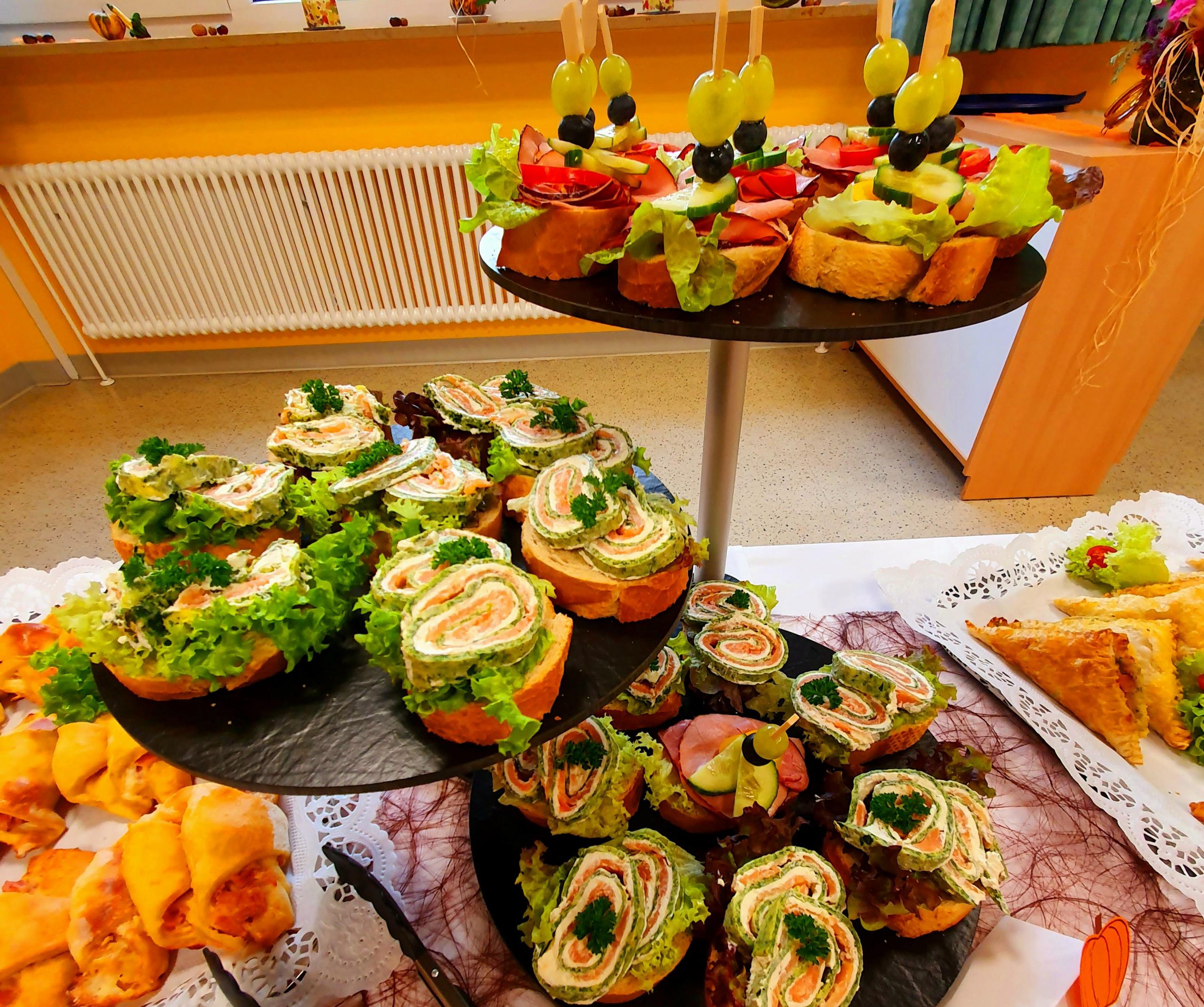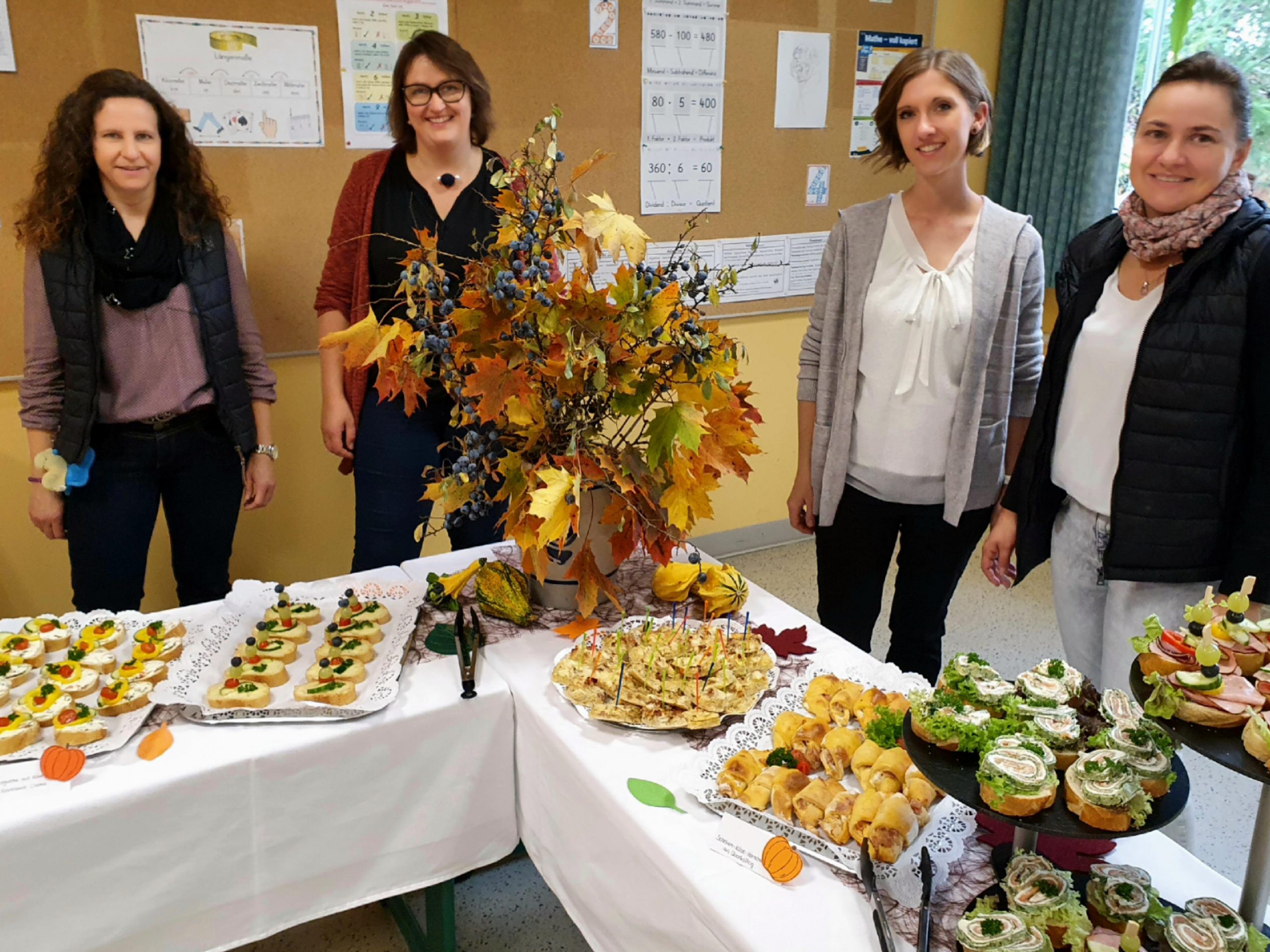 Der Elternbeirat bot im Anschluss Speis und Trank. Einige Klassen verkauften Weihnachtsschmuck und Süßigkeiten und die Eltern der Brückenklasse hatten einen Stand mit Leckereien aus ihrer Heimat.