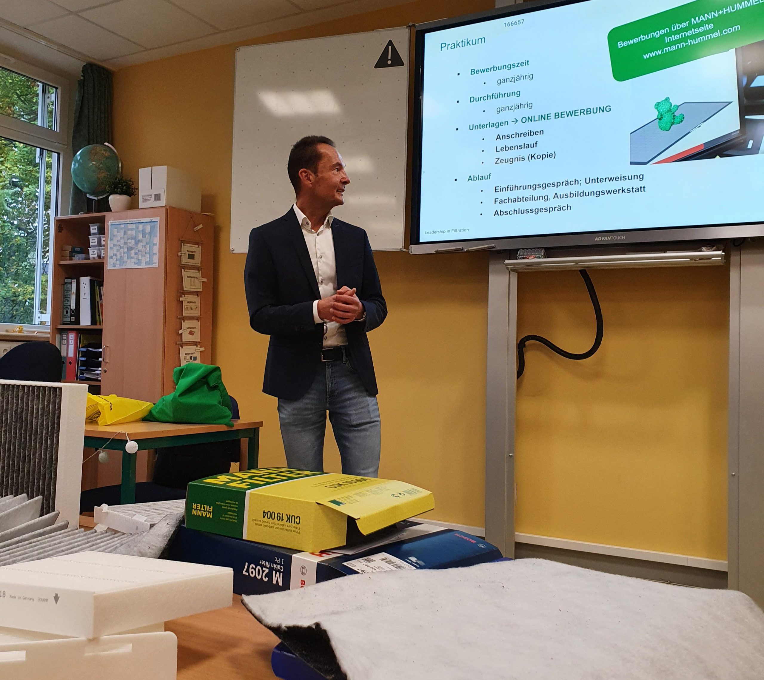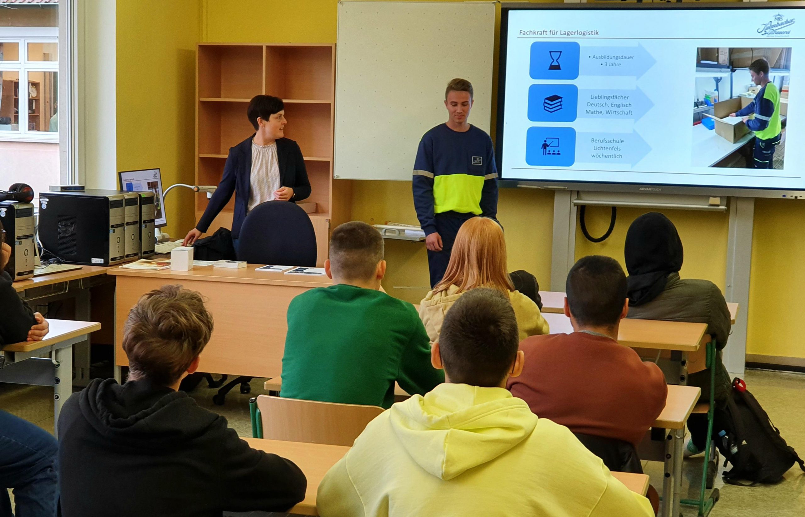 „Die Zeiten sind gut! Ihr werdet gebraucht, deshalb fallen auch die vielleicht nicht ganz so guten Schulnoten weniger ins Gewicht“, machte Horst Hohenner Mut. Nach einem kurzen Ausflug zu den Themen Ausbildungsvertrag und Jugendarbeitsschutzgesetz stellte sich der Gast den Fragen der Jugendlichen. Und dann waren 45 Minuten wie im Flug vergangen. Gebannt hingen die Jungs und Mädels dem ehemaligen Rechtsanwalt an den Lippen, der es verstand die komplexen Inhalte schülergerecht und packend darzustellen. Schulleiterin Anja Buchdrucker bedankte sich bei Horst Hohenner von ganzem Herzen dafür, dass er sich die Zeit nahm, das Thema Vorstellungsgespräch in der Theorie zu erläutern, bevor es in der kommenden Woche in die praktische Erprobung von Vorstellungsgesprächen im sogenannten „BerufeFINDERinterview“ geht!
