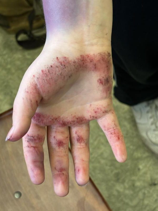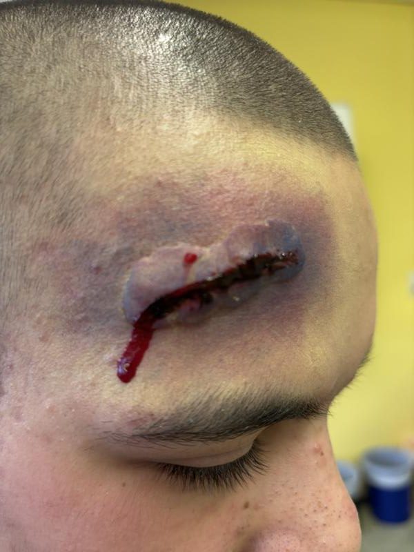 Unser SSD lernt nicht nur wie man Erste Hilfe leistet, nein, die Schülerinnen und Schüler lernen auch wie man verschiedene Wunden schminken kann. Mit Schwämmen, Farben, Vaseline und Abschminke beladen machten sich alle ans Werk und es kamen ein paar einfache Verletzungen heraus. Besonders beliebt war das „Blaue Auge“. Der eine war etwas mehr in „die Schlägerei“ verwickelt als der andere. Am Ende der Stunde wurde die Zeit zum Aufräumen etwas knapp, aber fast alle Verletzten waren wieder gesund und konnten sich gesund nach Hause begeben.